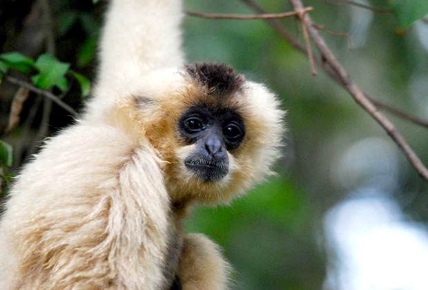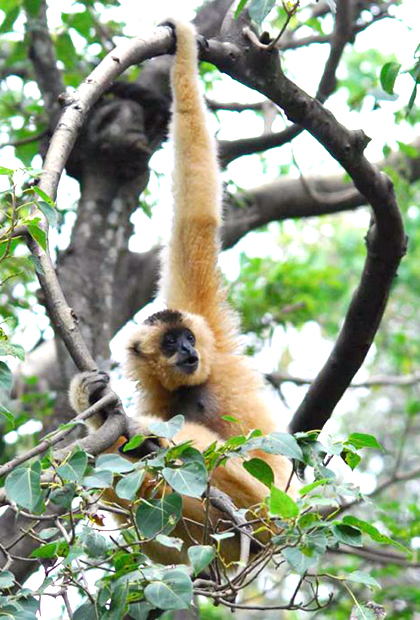 The Southern Yellow-Cheeked Gibbon is found predominantly in wet evergreen and semi-evergreen lowland forests but also found in mixed deciduous and bamboo forests. They are highly frugivorous and live in monogamous pairs with immature offspring.